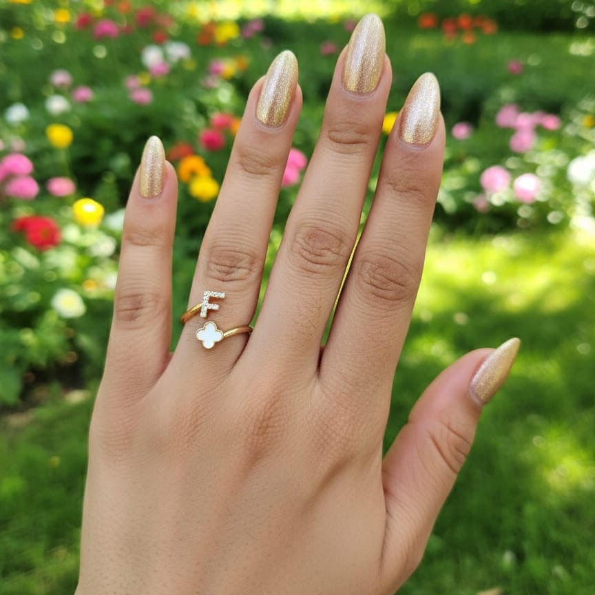 Embrace individuality and fortune with the Beautiful Lucky Letter Adjustable Ring. This exquisite piece combines the sophistication of a personalized initial, meticulously set for maximum shine, with the timeless charm of a stylized four-petal accent. Its open-ended design allows for a comfortable and flexible fit on various finger sizes. Perfect for celebrating a milestone or simply adding a meaningful, delicate shimmer to your everyday look, this ring is a cherished keepsake designed for versatile wear.