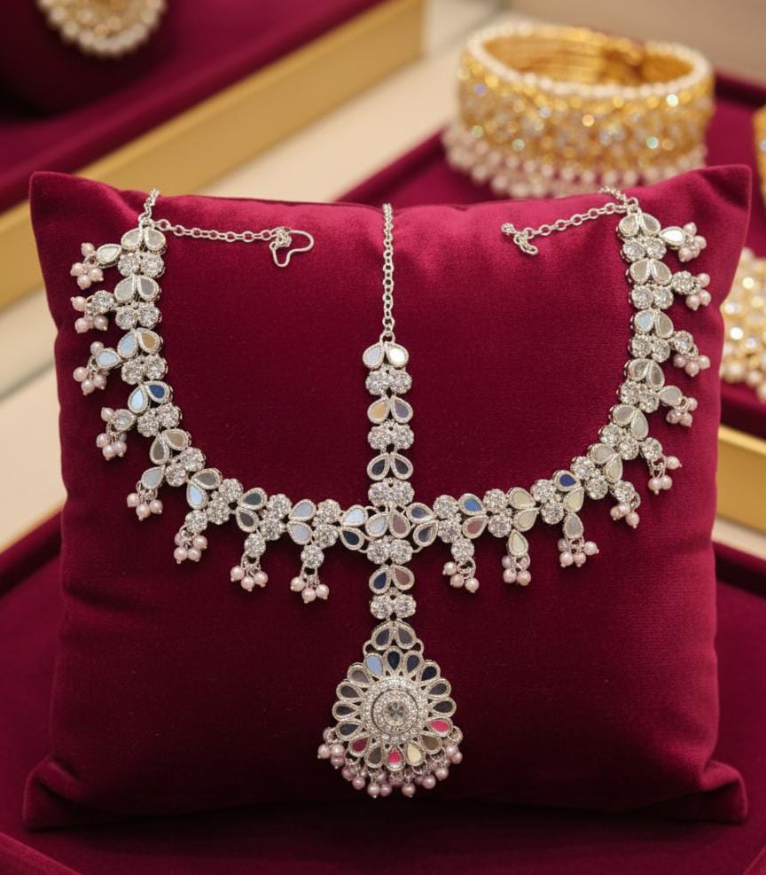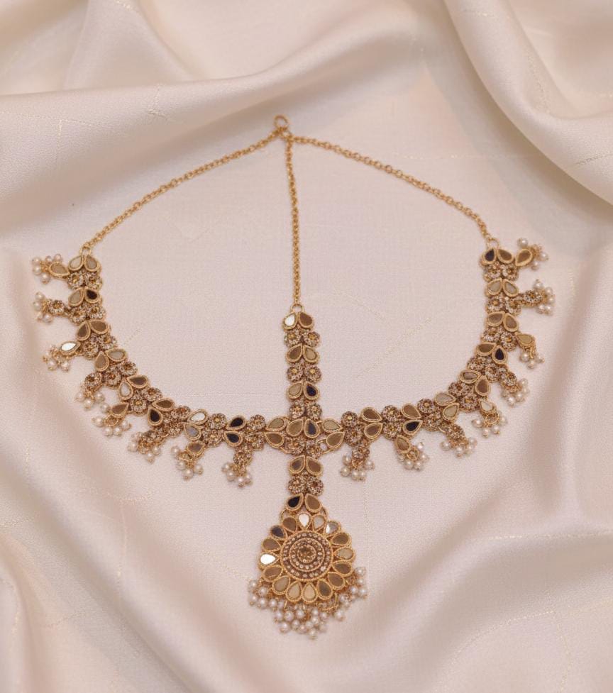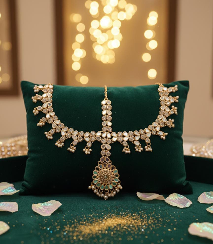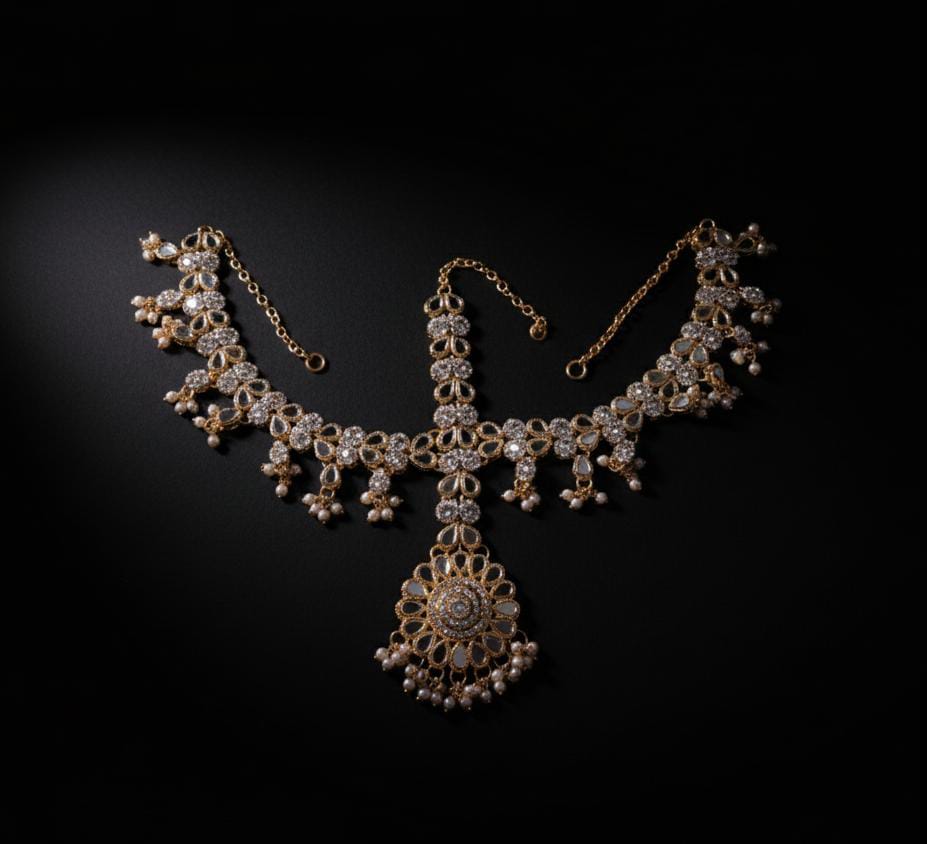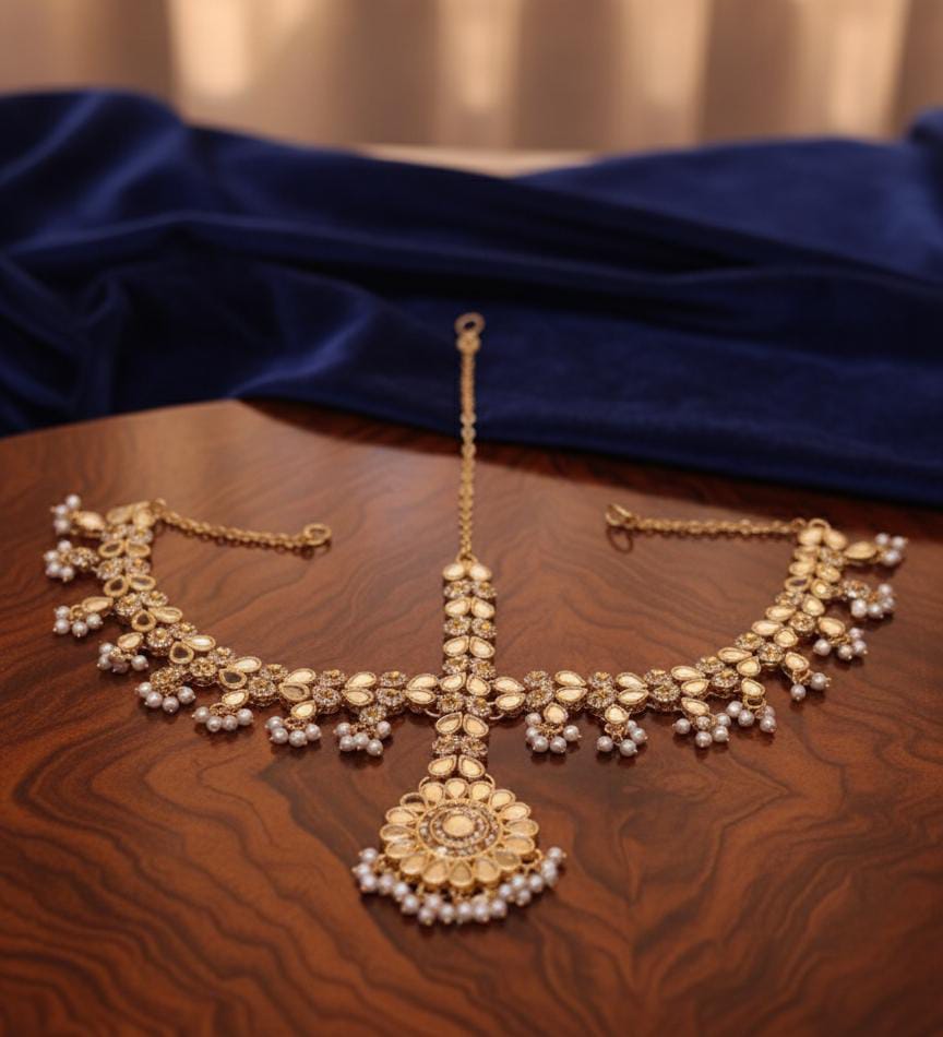 • Design: Integrated style featuring a central Maang Tikka with multiple side chains (Matha Patti).