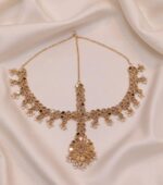 Achieve a look of breathtaking bridal opulence with this Beautiful Matha Patti Maang Tikka ensemble. This majestic hair accessory is designed to perfectly frame your face, blending the elegance of a central forehead ornament with the grand style of a traditional headband.