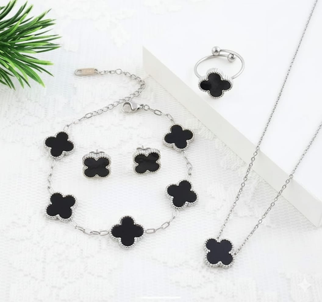 Bring a touch of luck and luxury to your everyday style with our Four Leaf Clover Jewellery Set. This sophisticated collection is inspired by the iconic Van Cleef aesthetic, offering a timeless “Lucky Clover” design that symbolizes faith, hope, love, and luck.