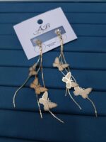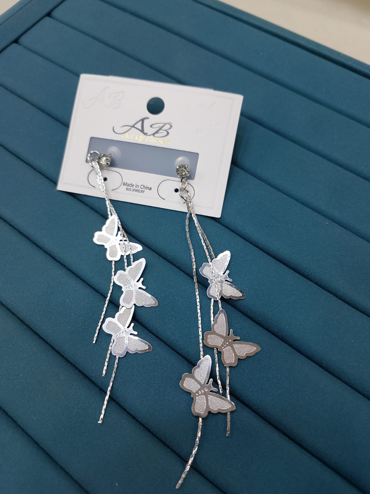Elegant alloy drop earrings featuring a delicate butterfly accent and flowing fringe. Lightweight, eye-catching, and perfect for adding whimsical movement and sparkle to any outfit.