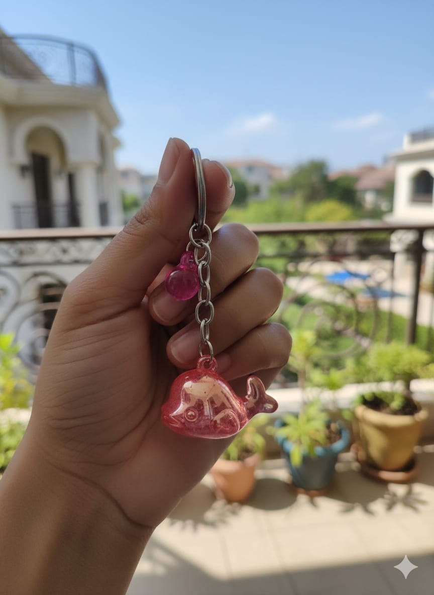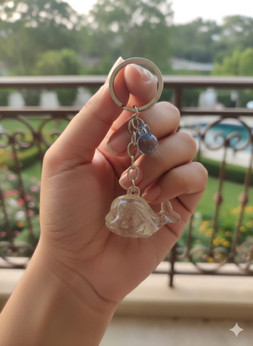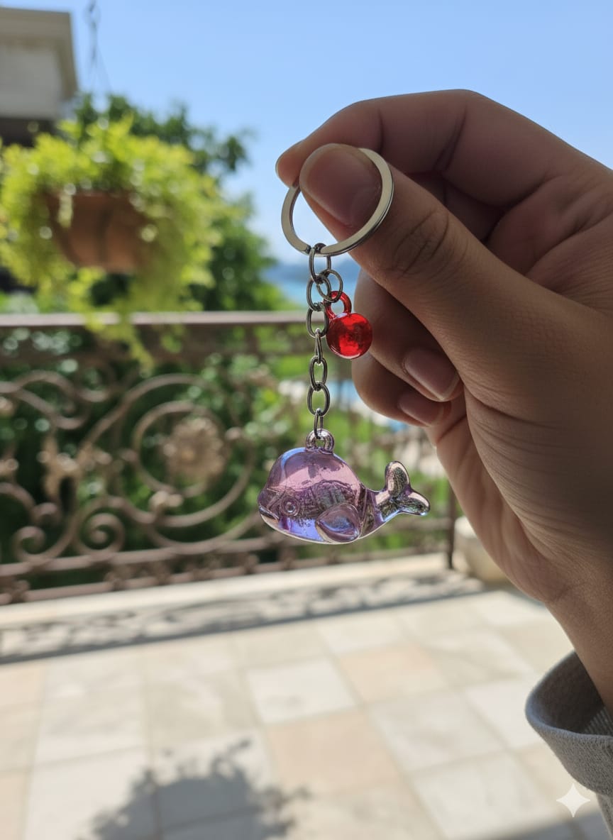 Cute 3D Acrylic Dolphin Keychain & Bag Charm. Adorable, glossy dolphin figure made from durable acrylic. A vibrant and cheerful accessory for keys, backpacks, and purses.