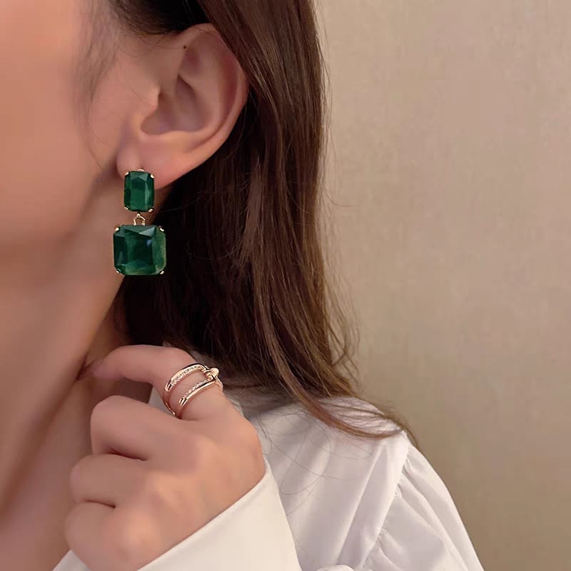 - Brilliant Rectangular Crystals: Each earring showcases two radiant, faceted crystals in a chic rectangular cut, delivering exceptional sparkle and clarity.