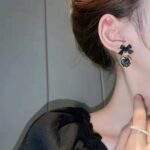 Embrace the latest K-fashion trends with our striking Korean Black Bow Crystal Drop Earrings. These statement pieces are designed for those who love bold, romantic, and slightly Gothic-inspired aesthetics.