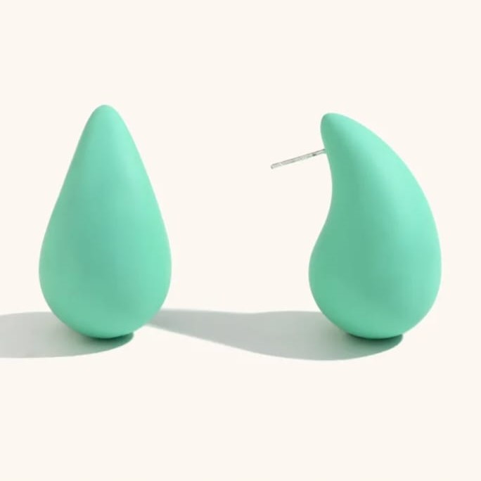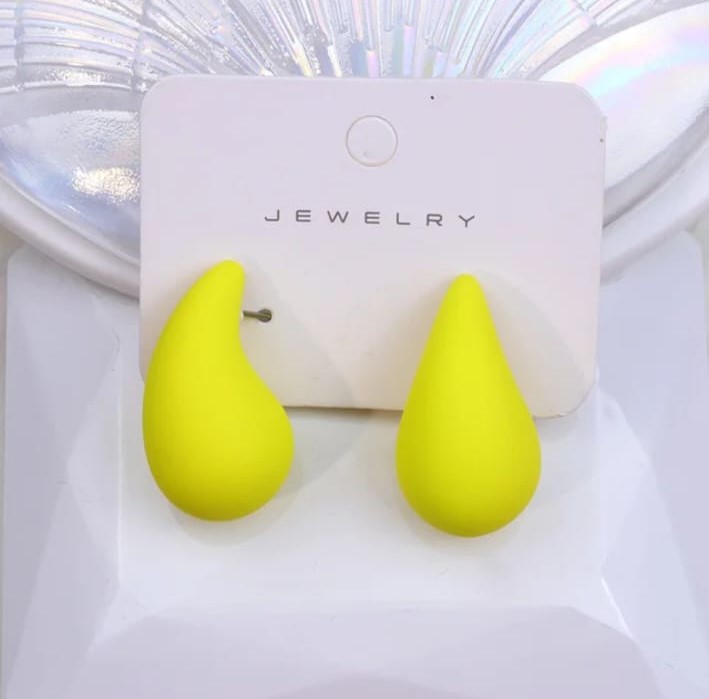 Bold Neon Matte Water Drop Earrings. Lightweight dangles featuring a classic teardrop shape and a trendy, non-reflective matte finish in a vibrant neon color. The perfect modern statement accessory.
