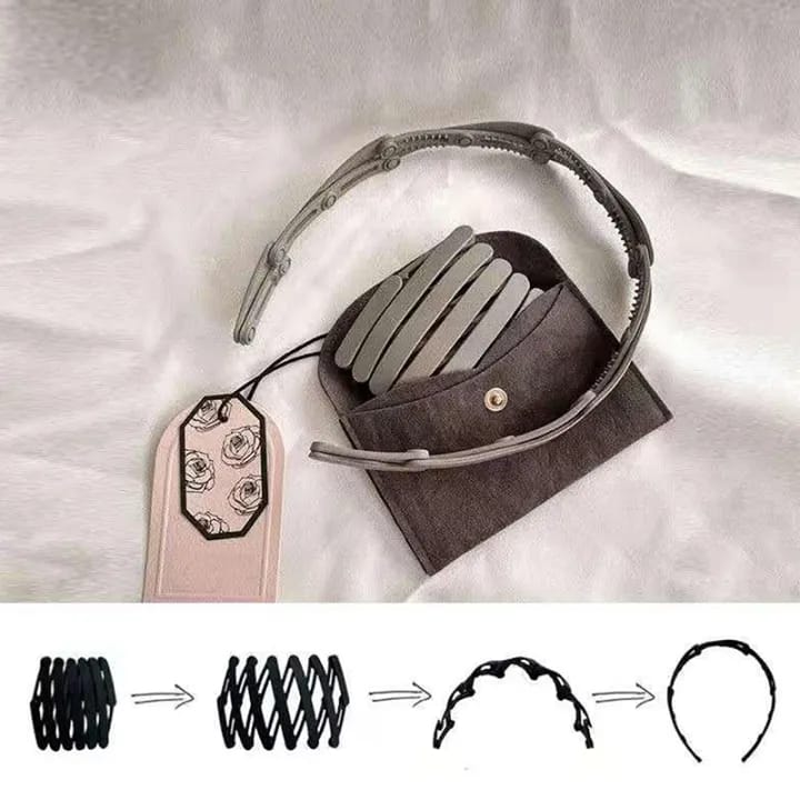 - Meet your new favorite travel companion: the Portable Foldable Hair Hoop. Designed for convenience, this innovative headband features a unique hinge that allows it to collapse into a small, pocket-friendly size, saving valuable space in your purse, gym bag, or luggage.