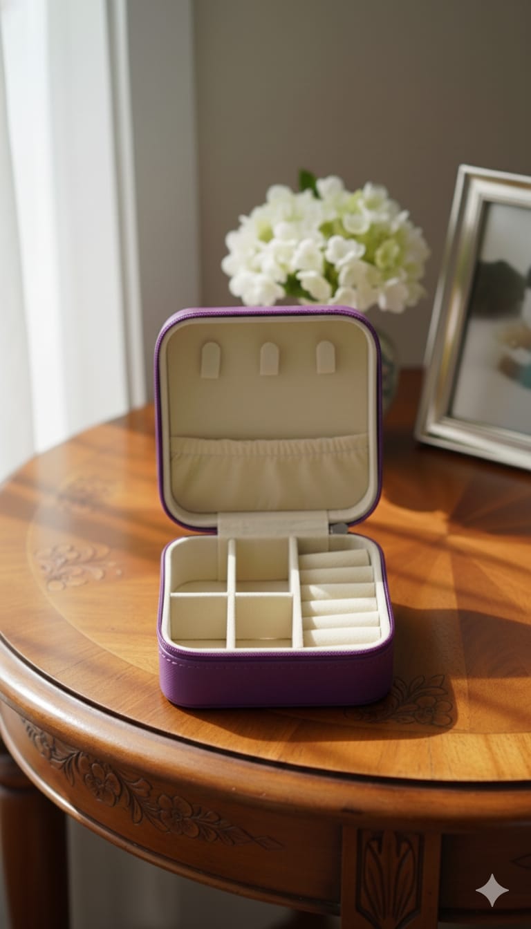 The exterior is crafted from a durable, easy-to-clean material (specify material, e.g., faux leather or PU leather), and the interior features a soft lining to protect your jewelry from scratches. The secure closure ensures nothing shifts or spills during transit. Lightweight and perfectly sized to slip into a handbag, luggage, or bedside drawer, this empty box is ready to be filled with your collection.