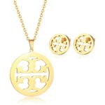 Discover the beauty of everyday luxury with this perfectly matched necklace and earring set. Crafted from durable Stainless Steel and finished in a vibrant gold tone, this set is built for longevity and comfortable daily wear. Each piece features a simple, round medallion pendant with a striking cut-out geometric pattern that echoes high-end, designer-inspired style. The delicate chain necklace and coordinating stud earrings provide an effortlessly chic look, making this set a staple for a minimalist, fashion-forward wardrobe. It’s the ideal accessory to complete any outfit, from tailored workwear to weekend casual.