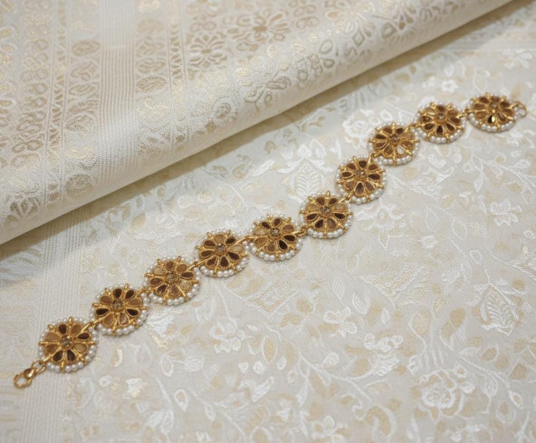Complete your regal look with this magnificent Traditional Mathapatti / Sheesh Phool (Headband/Crown of Flowers). This essential bridal and festive hair accessory beautifully frames the face and acts as the central forehead ornament, instantly elevating any traditional Indian or South Asian ensemble.